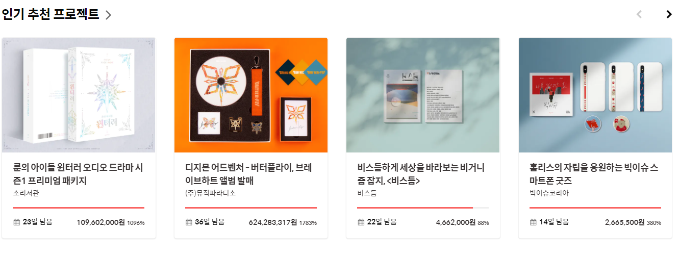 인기 추천 프로젝트 첫 번째에 당당히 게시되어 있습니다.