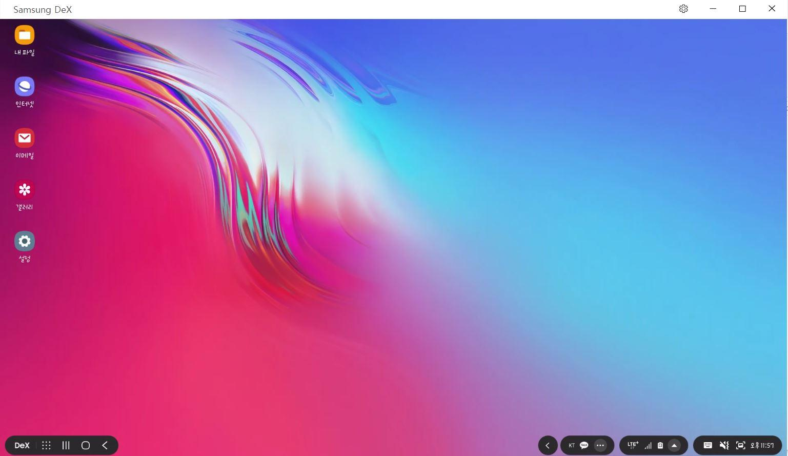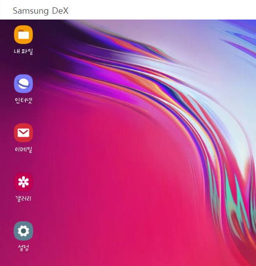 삼성 덱스 홈 화면이고, 좌측에 있는 아이콘은 거의 기본 앱이 나와있습니다.