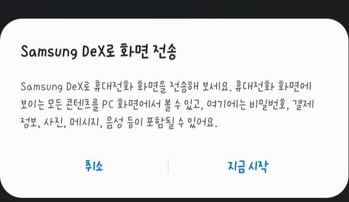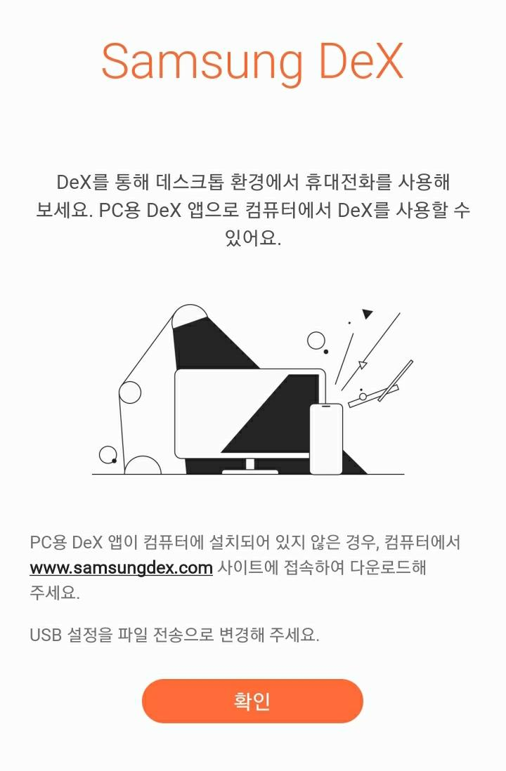아래는 휴대폰에 덱스에 대한 안내가 뜨는 창을 캡처해서 올려보았습니다.