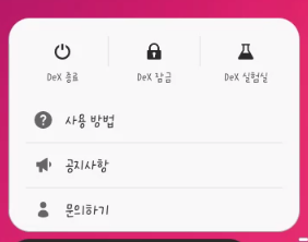 영어로 DeX라고 쓰인 곳을 클릭하면 덱스 종료 등 덱스와 관련된 창이 열립니다 아래 이미지와 같습니다.