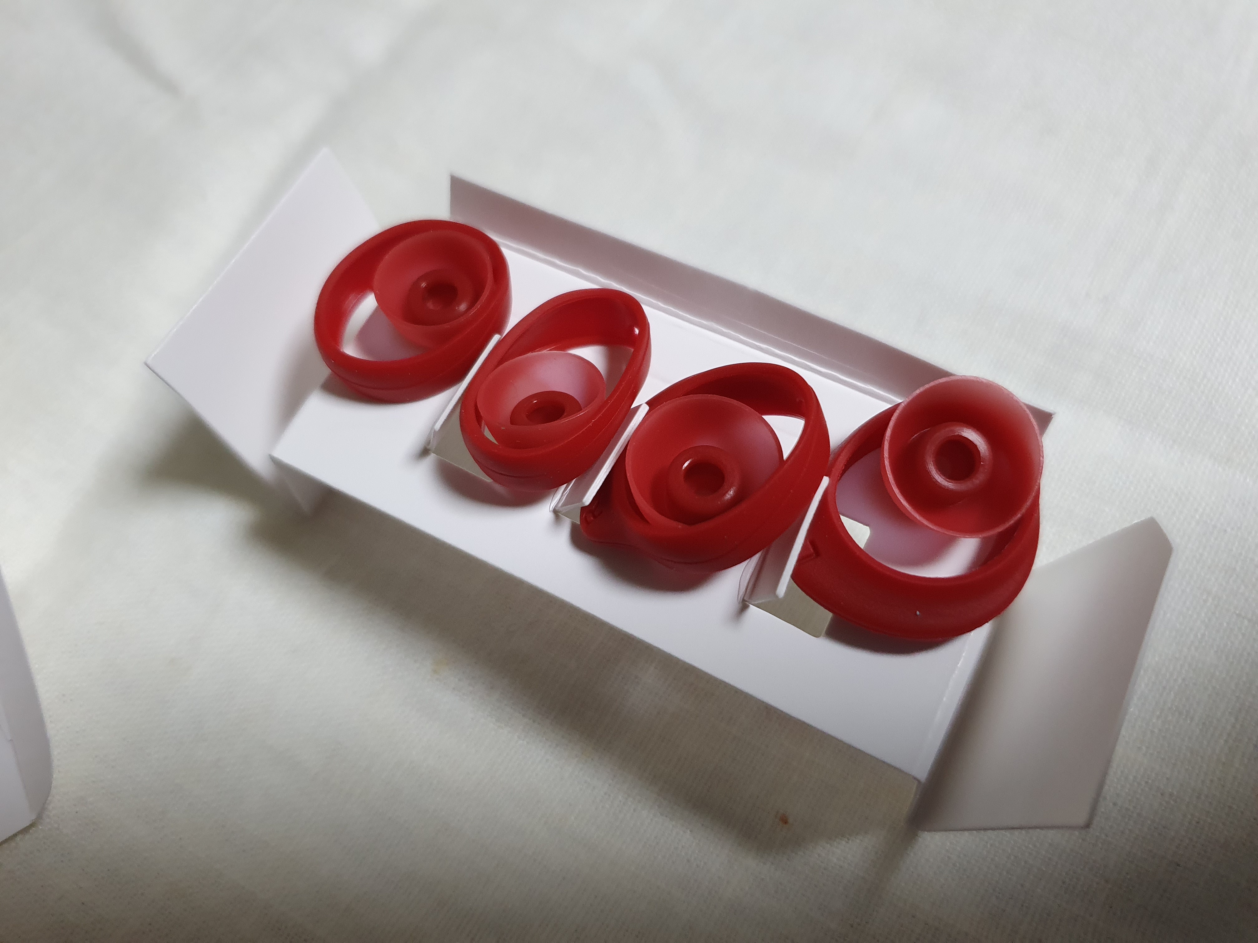 이어 버드와 동일한 레드 컬러로 제공이 되었으며, 실리콘 재질 특성상 살짝 불투명한 느낌을 줍니다.