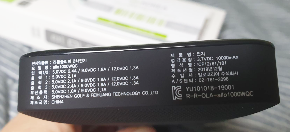| 보조배터리 알로코리아 코드X (allo 1000WQC) 용량10000 (0) | 2020.02.29 |